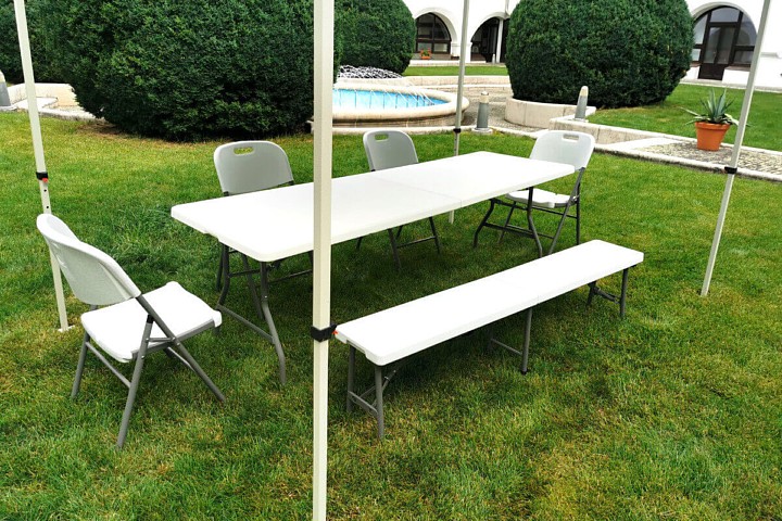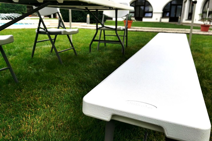 Os conjuntos de cerveja tradicionais estão se tornando coisa do passado, e o cuidado com as partes de madeira também é passado. O banco dobrável de plástico é um dos produtos líderes no mundo do mobiliário dobrável para catering. Festivais tradicionais com comida, exposições ou churrascos não podem mais dispensar móveis dobráveis. Foi para esses eventos e muitos outros que o banco dobrável foi criado para fornecer lugares suficientes para sentar, ser fácil de desdobrar e exigir manutenção mínima.