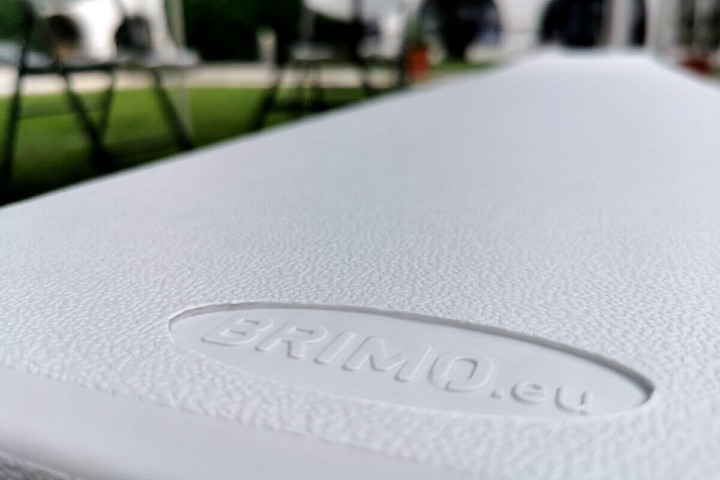 O design elegante do banco, com assento branco e estrutura e pés cinzas, combina com qualquer ambiente interno ou externo. A manutenção do banco não exige muito tempo. A limpeza regular após o uso é suficiente. Os bancos foram projetados para garantir rapidamente lugares para sentar. O desdobramento do banco leva menos de 30 segundos, o que o torna um assistente incomparável no setor de catering ou alimentação.