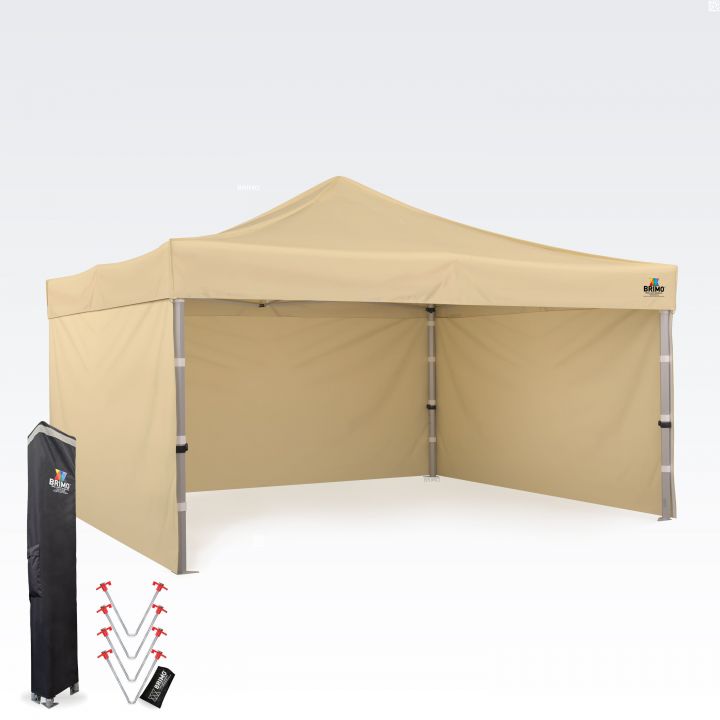 A base de qualquer cobertura de qualidade é um teto sólido e impermeável e painéis laterais. Os nossos modelos premium de 4x4 metros são construídos para uma montagem e desmontagem rápida em qualquer lugar onde necessite de uma sombra fiável. Lidam facilmente com as variações meteorológicas. A proteção contra a radiação UV agressiva é um padrão total nos nossos materiais. O revestimento especial de PVC no lado interior assegura um excelente sombreamento, enquanto as costuras termoseladas garantem que não penetre nem uma gota de água.