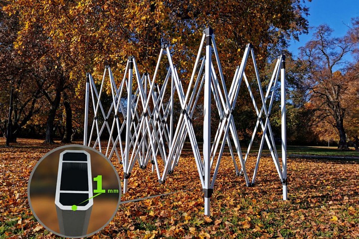 O design moderno irá satisfazê-lo. A estrutura de alumínio é ultraleve e a tenda fácil de transportar. Com o sistema automático de montagem, a tenda 3x6m pode ser facilmente montada e desmontada em qualquer lugar. Nenhuma ferramenta adicional é necessária. As peças podem ser facilmente substituídas graças às conexões aparafusadas.