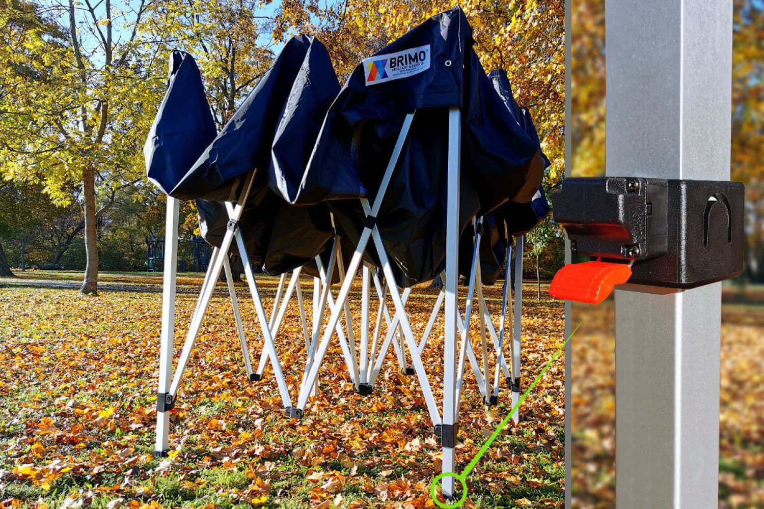 O tempo total para montar a tenda é de apenas alguns segundos. Num instante, cria um espaço totalmente protegido com o pavilhão promocional. Componentes cuidadosamente desenhados facilitam o desdobramento da própria tenda. É tão simples como abrir um guarda-chuva. Pensámos em poupar tempo, muito valioso antes de vender ou apresentar. Ninguém quer perder tempo; todos queremos fazer tudo rapidamente para nos concentrarmos na venda em si.