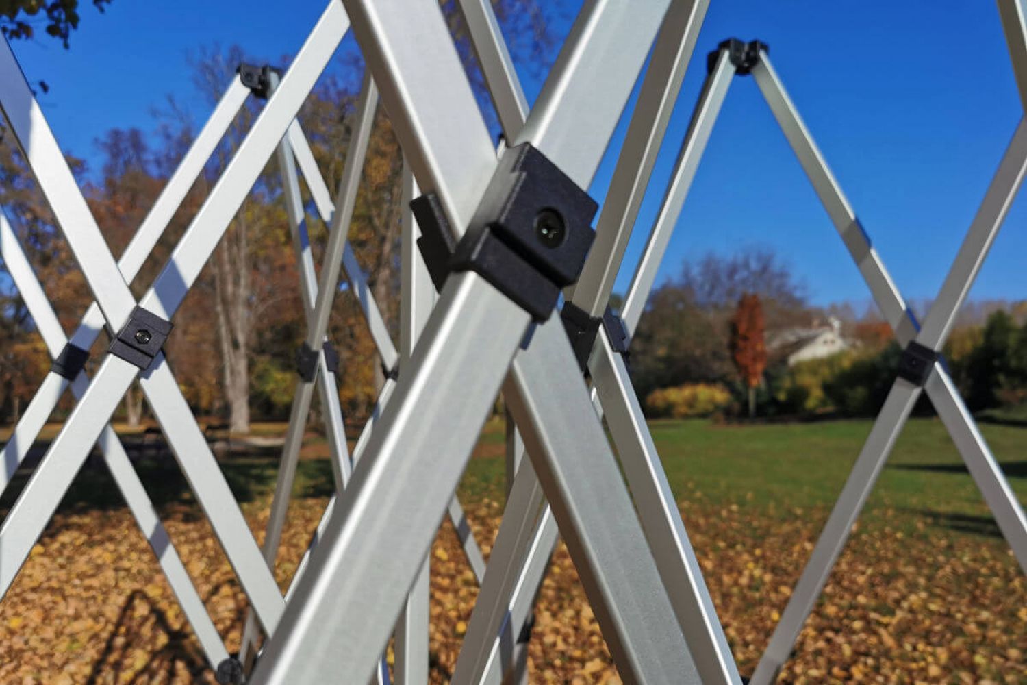 - Modelo Exclusive de alumínio utilizado com ventos até 60 km/h. Pernas com furos para fixação no solo com estacas – grátis!