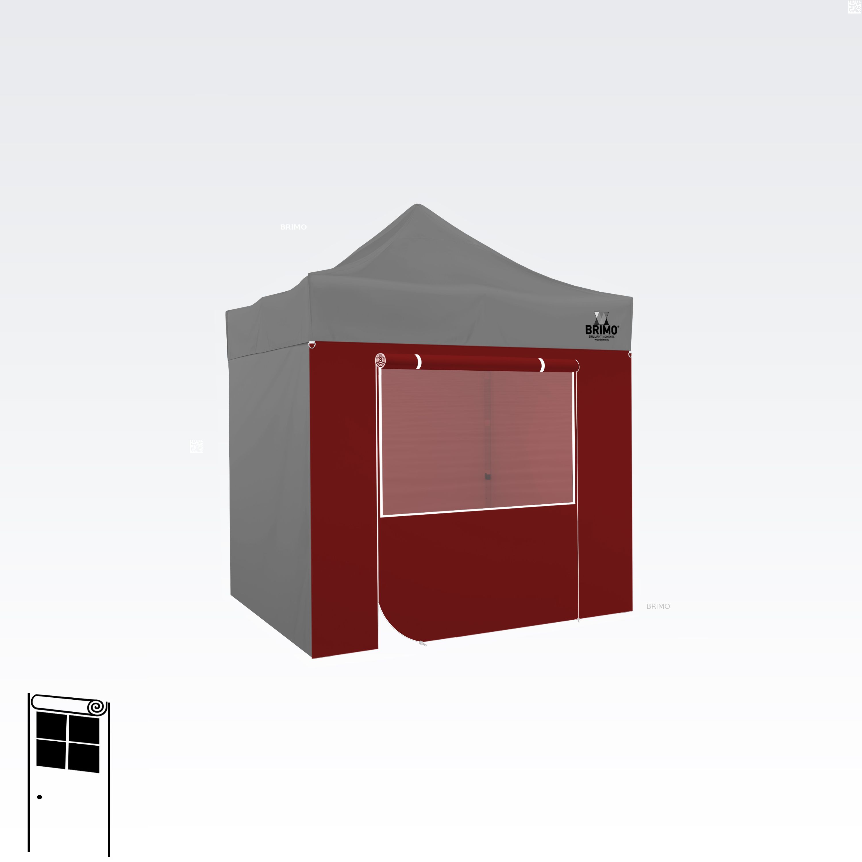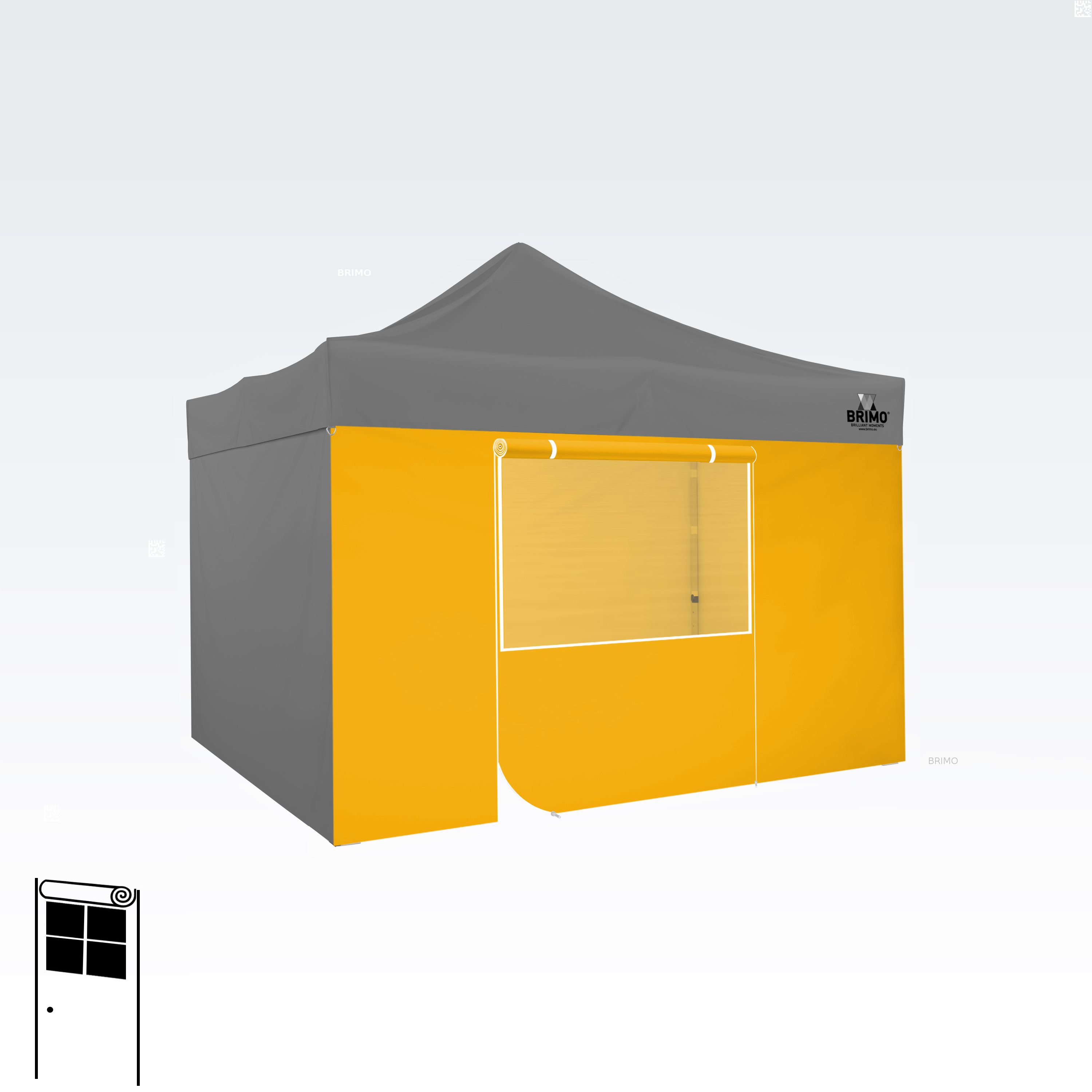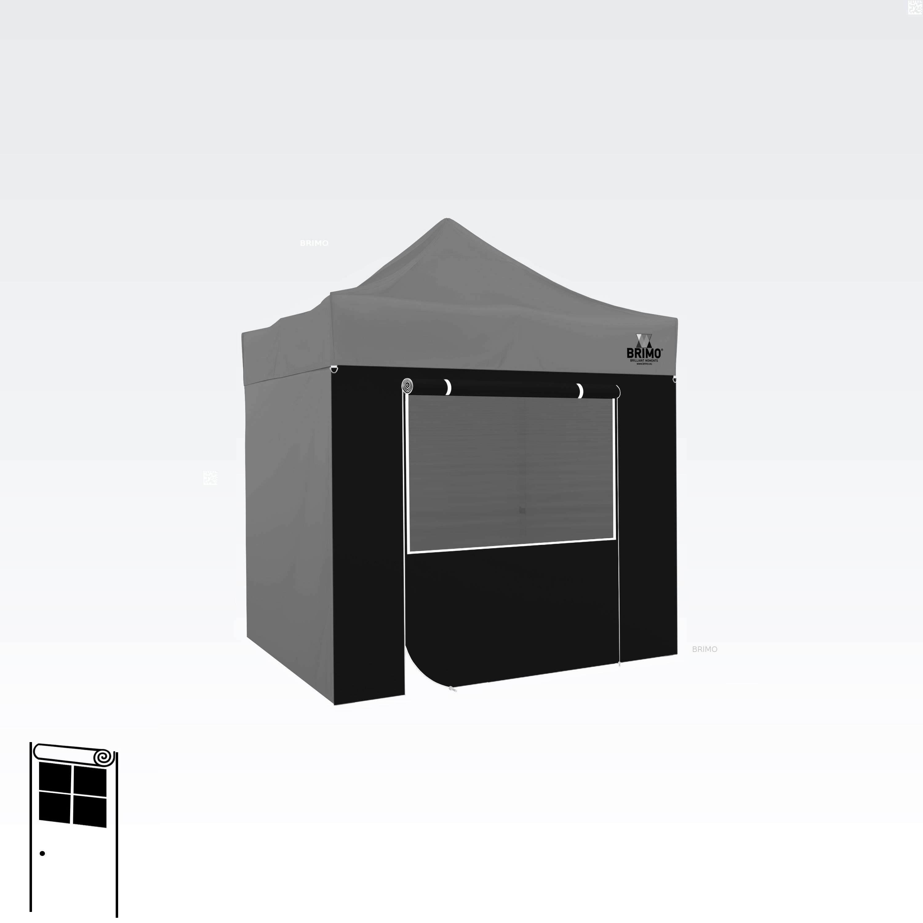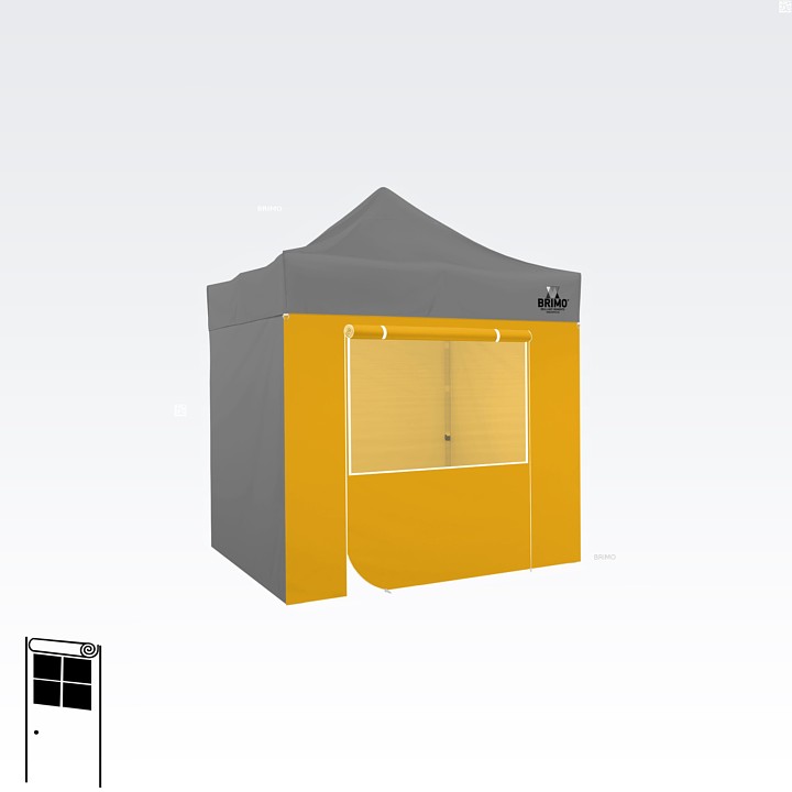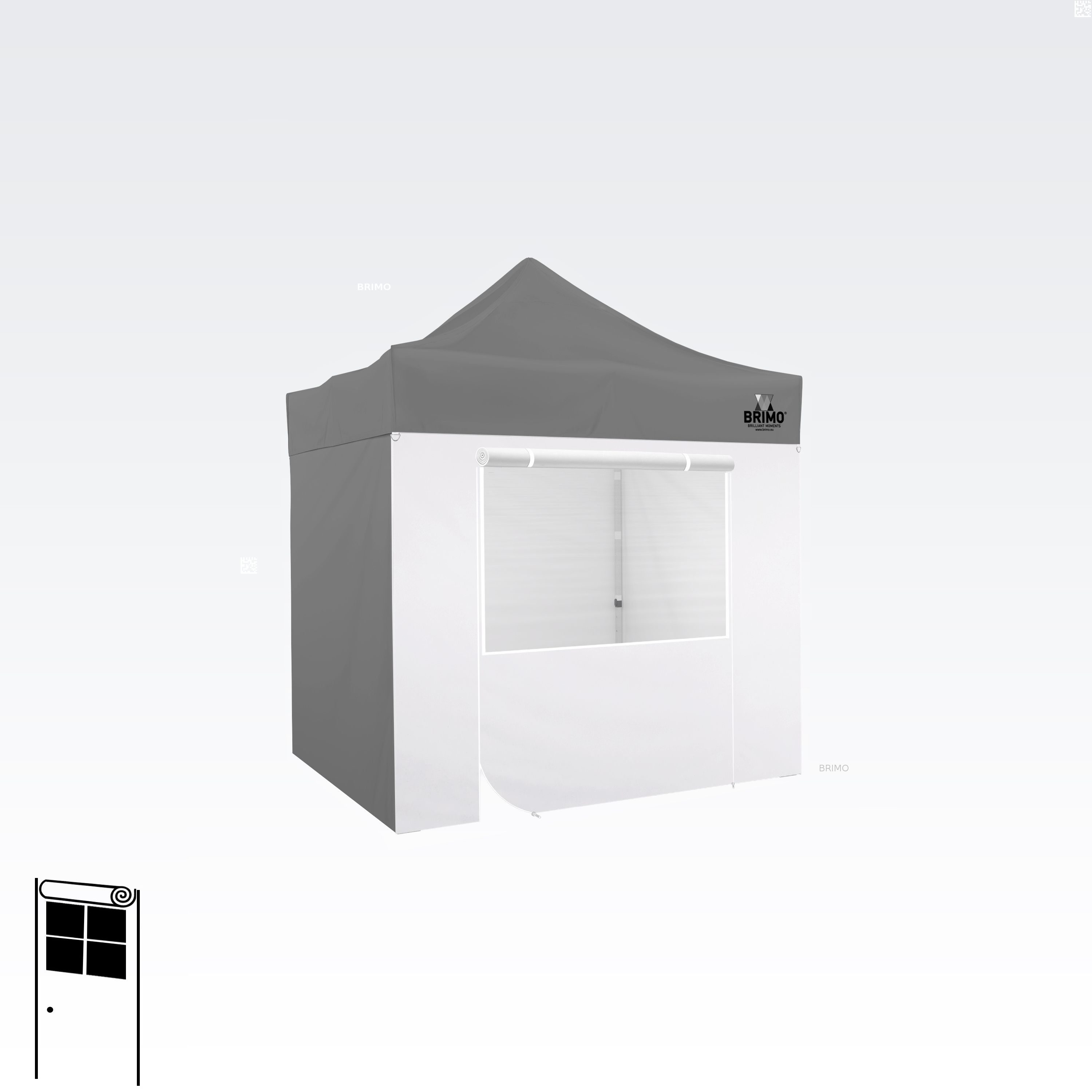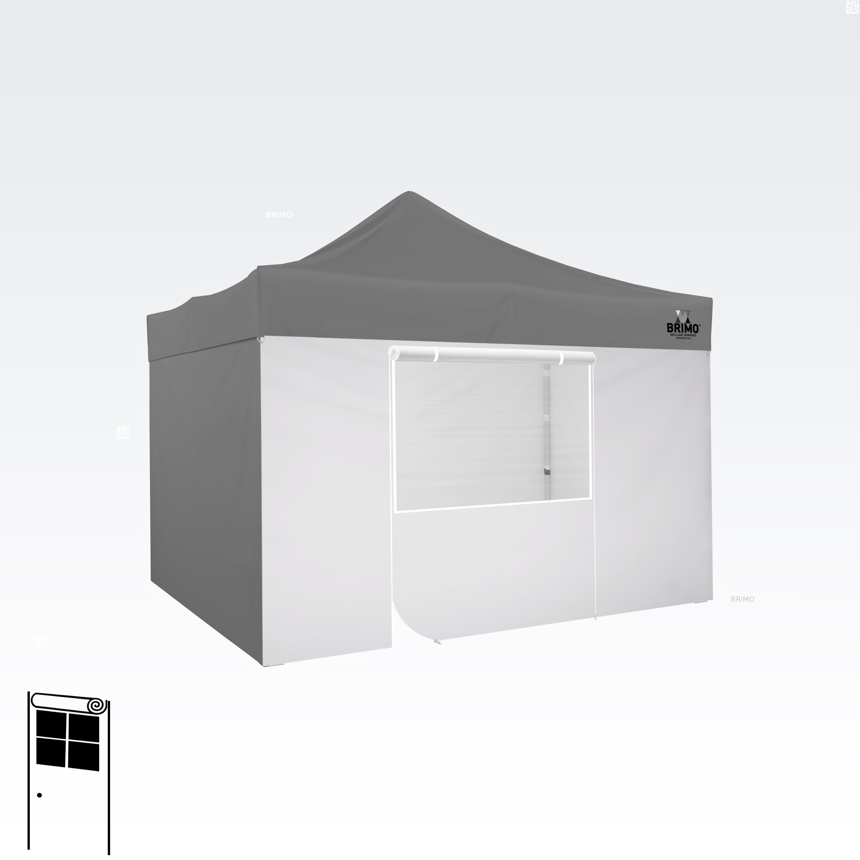 Esta parede multifuncional fecha completamente a sua tenda. O conjunto básico da tenda inclui três paredes inteiras na cor do tejadilho. Pode também escolher uma quarta parede na cor que necessitar. A parede pode ser utilizada como uma parede inteira, uma parede com janela ou como entrada para a tenda, graças à porta com fecho de correr.