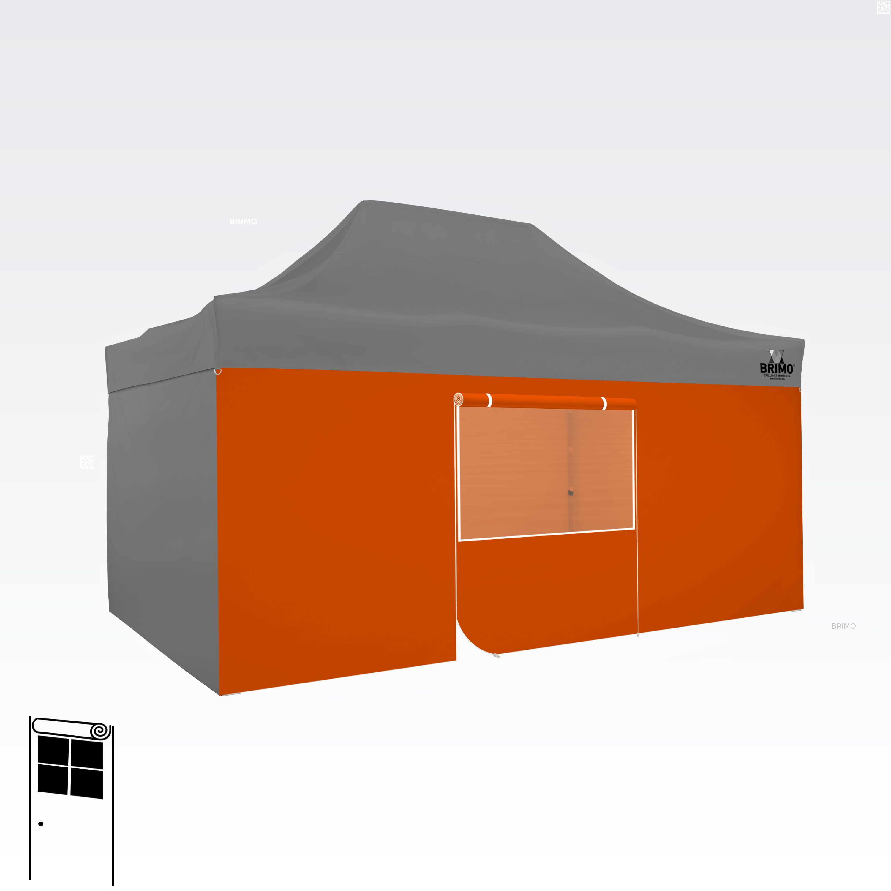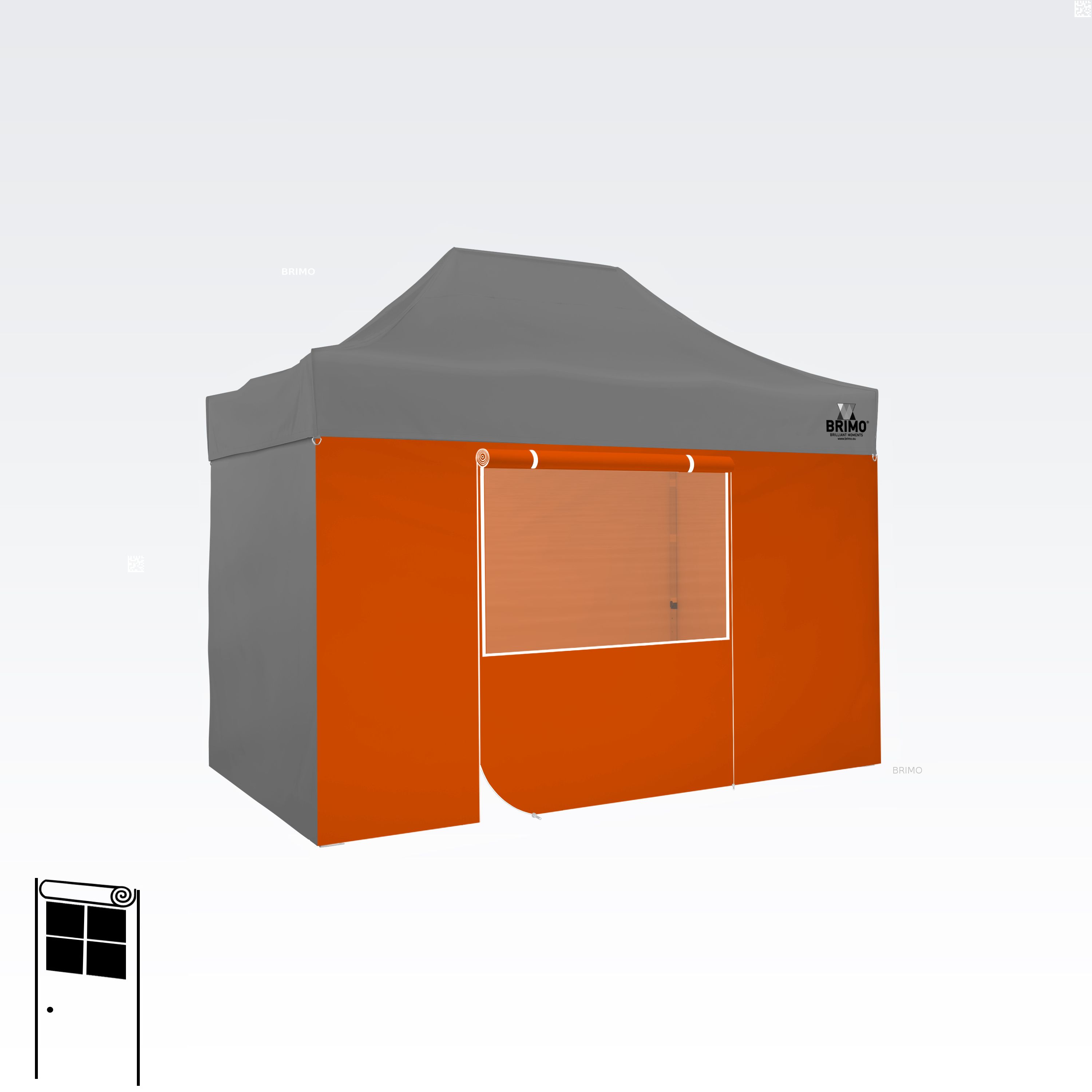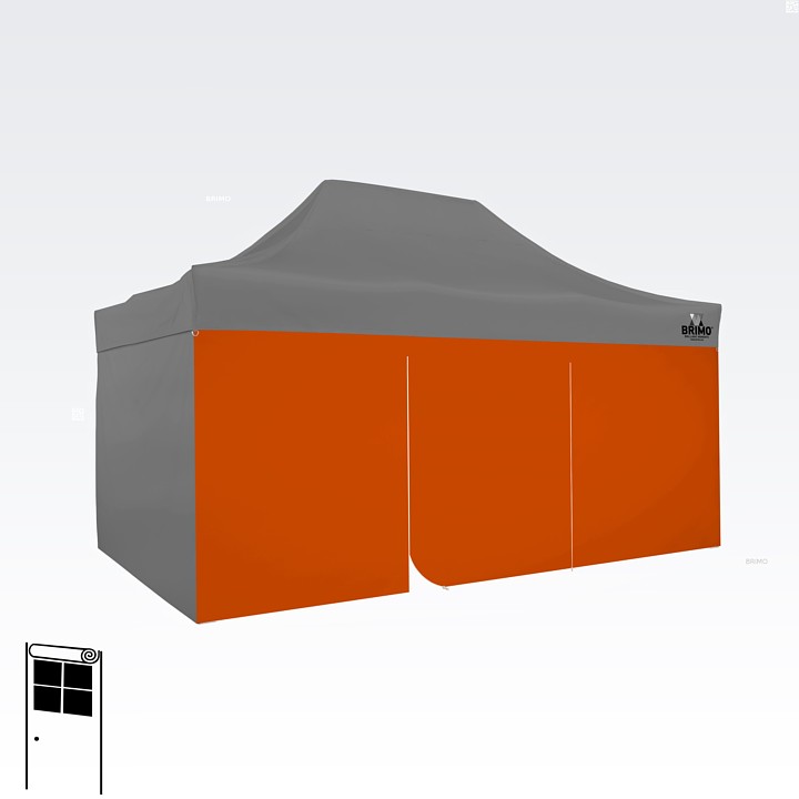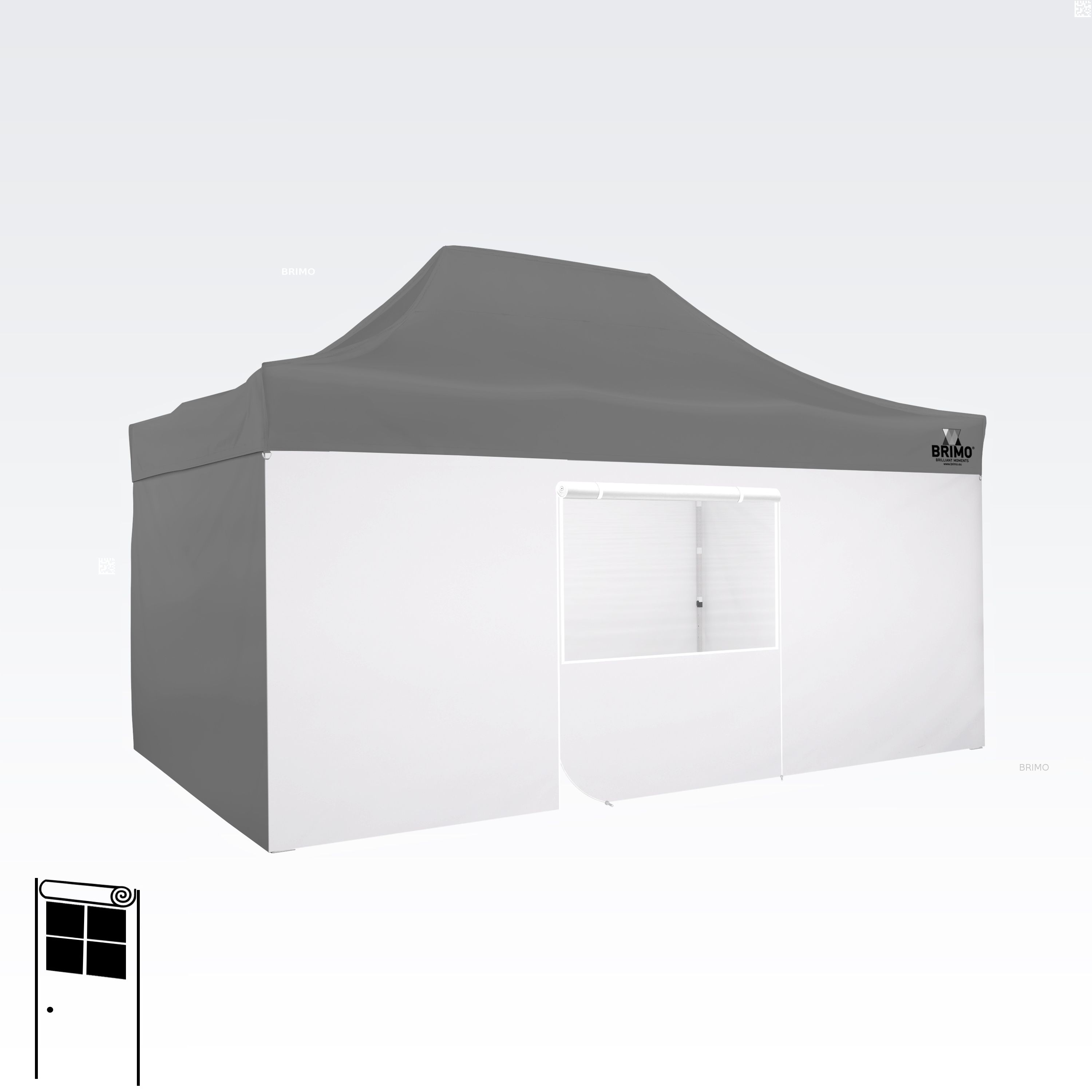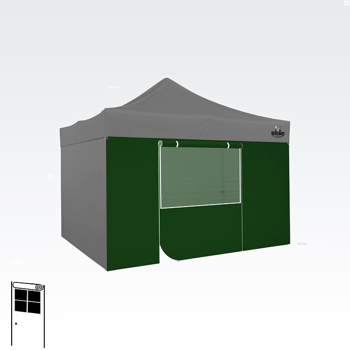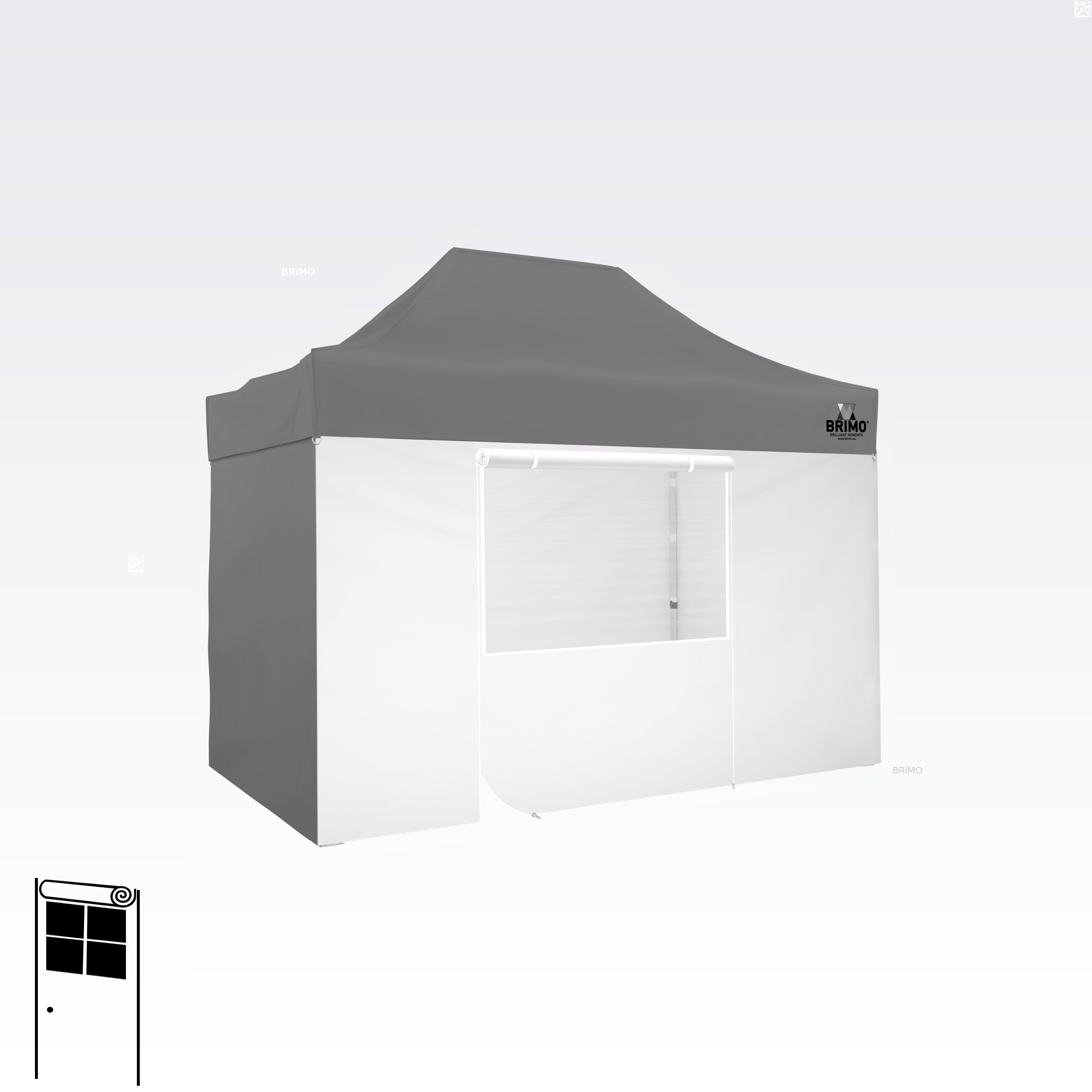 Esta parede multifuncional fecha completamente a sua tenda. O conjunto básico da tenda inclui três paredes inteiras na cor do tejadilho. Pode também escolher uma quarta parede na cor que necessitar. A parede pode ser utilizada como uma parede inteira, uma parede com janela ou como entrada para a tenda, graças à porta com fecho de correr.
