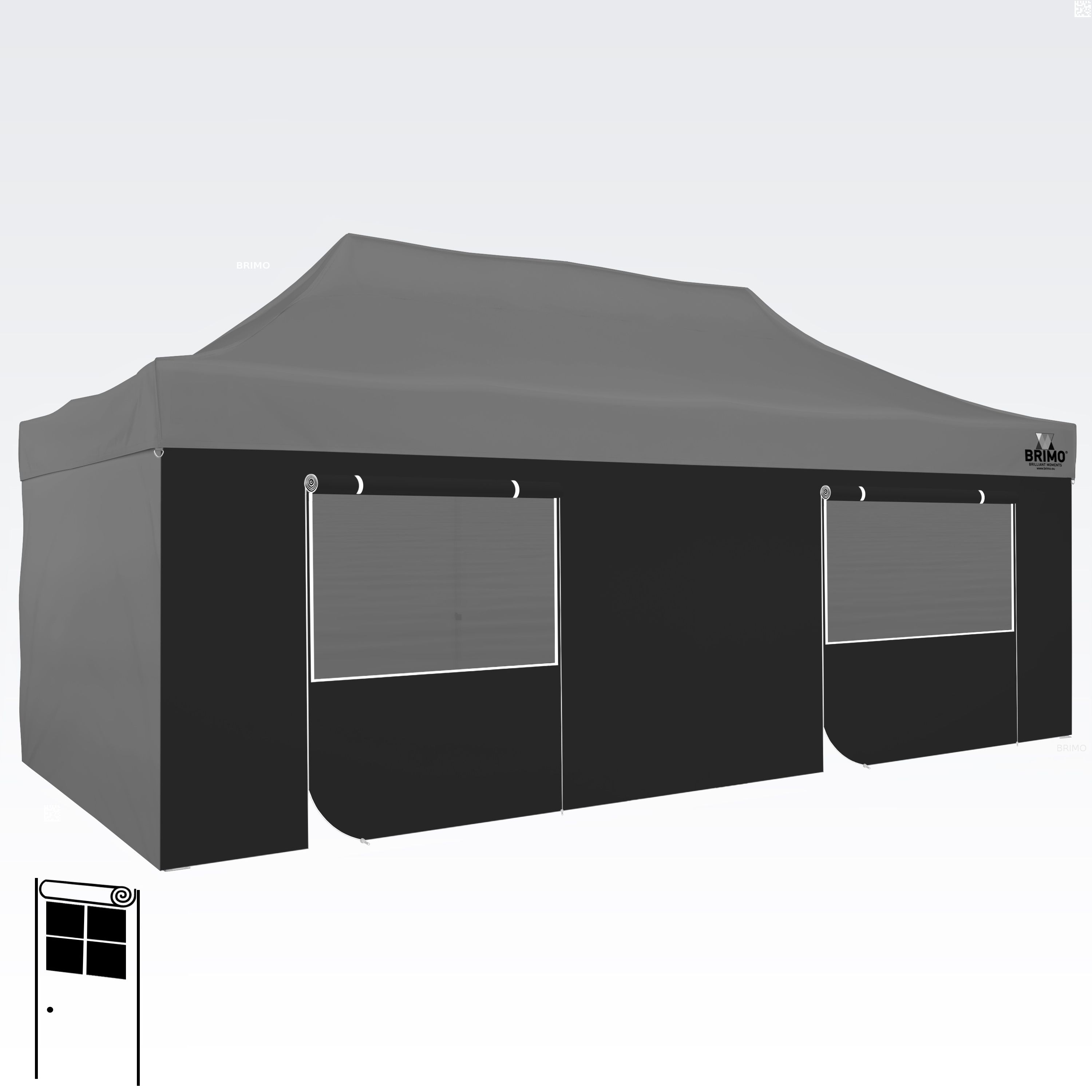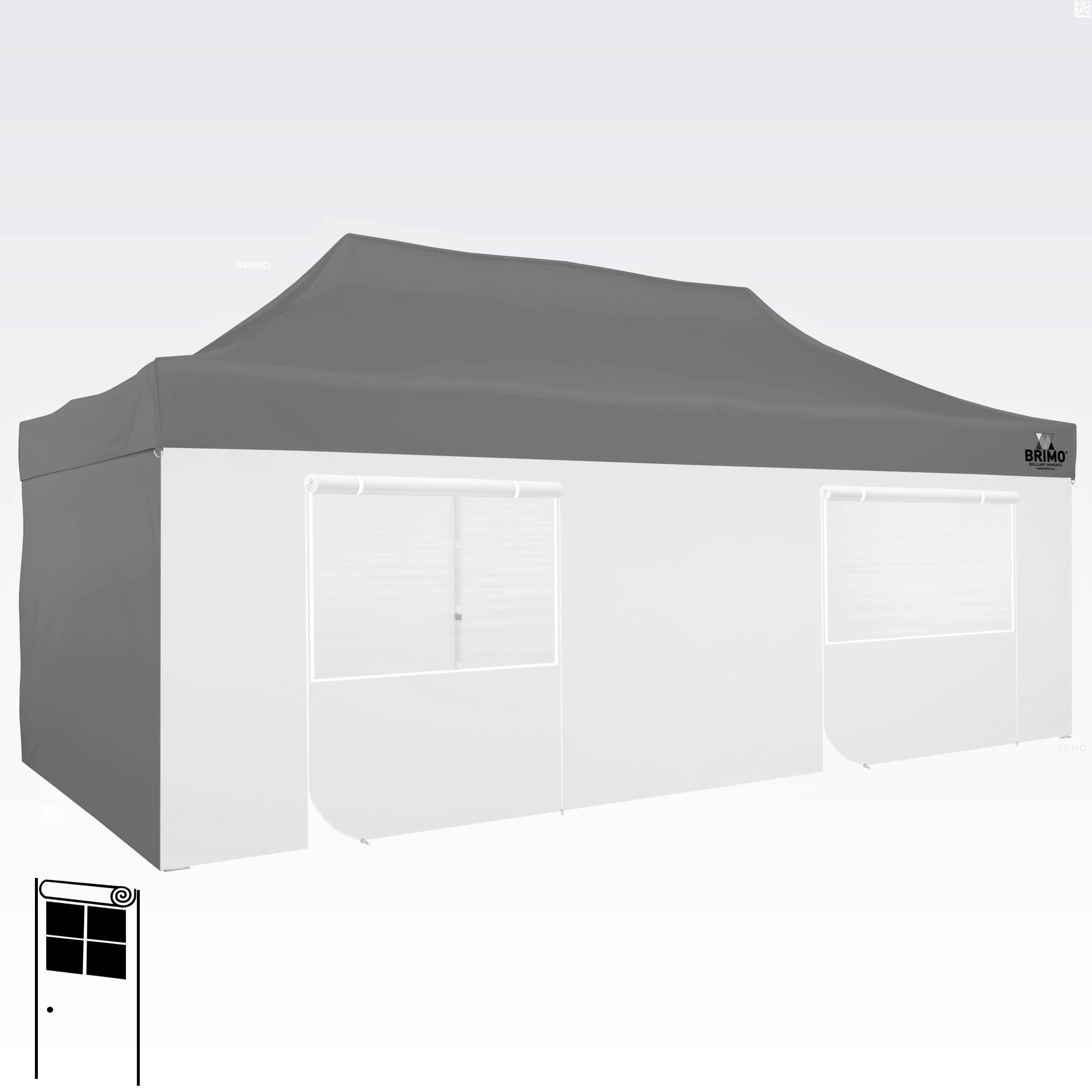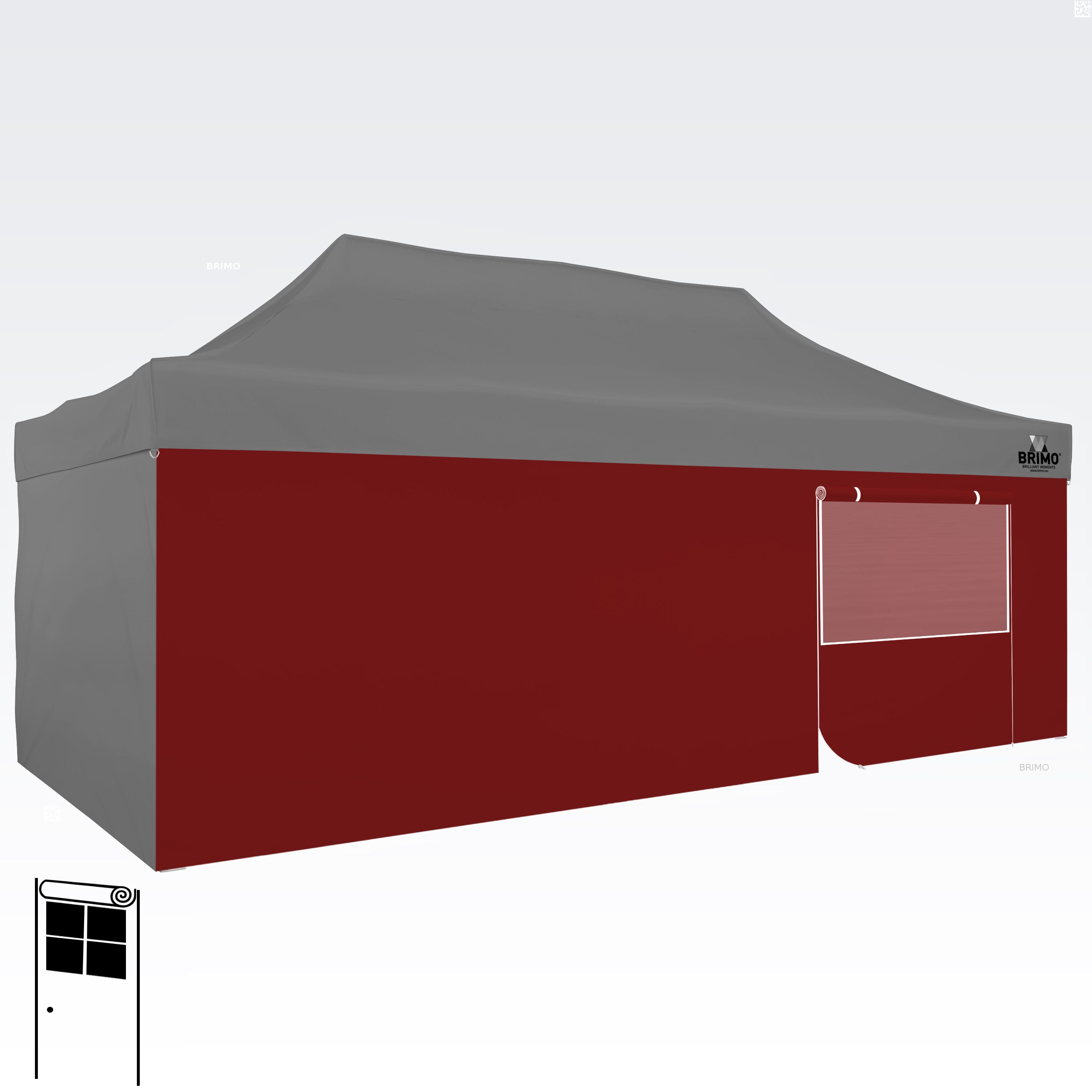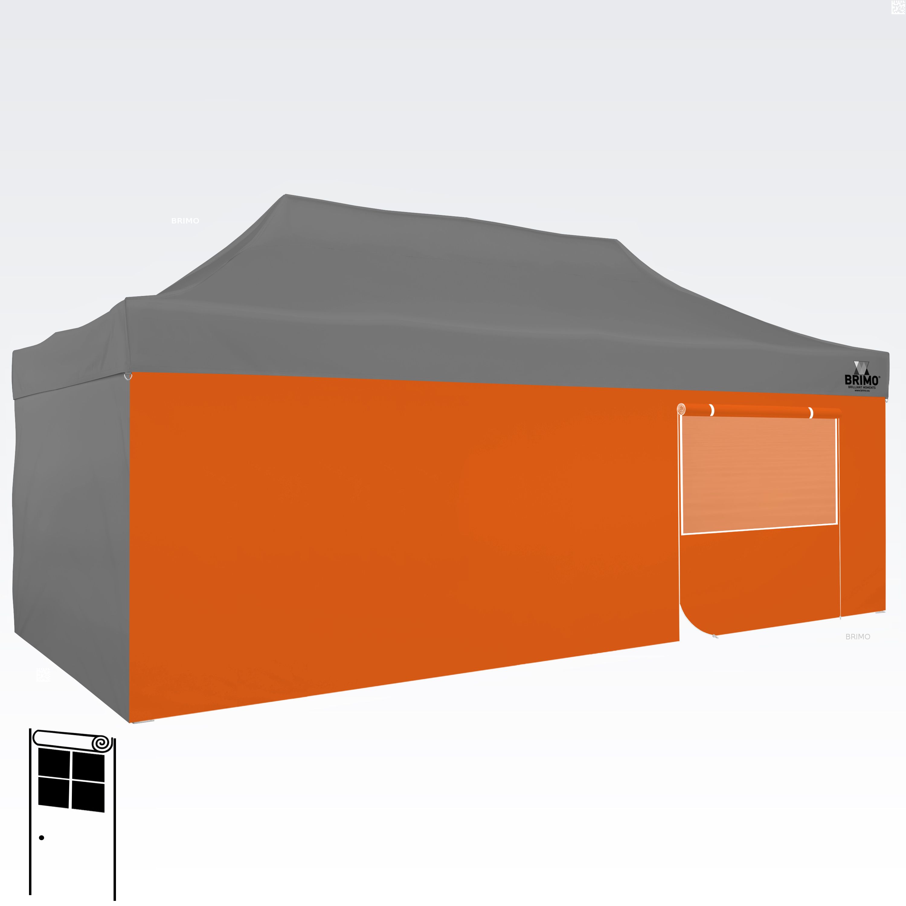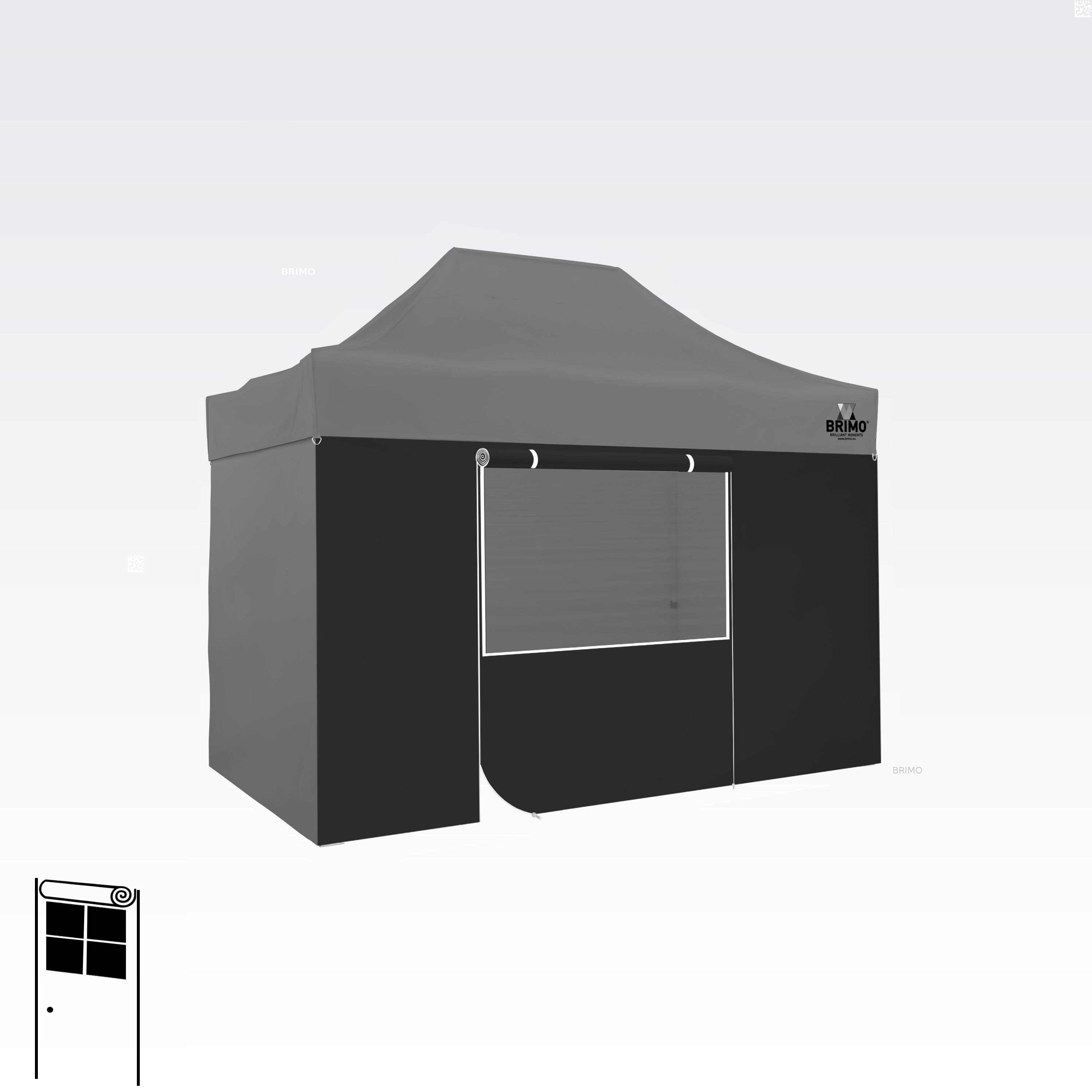 Esta parede multifuncional fecha completamente a sua tenda. O conjunto básico da tenda inclui três paredes inteiras na cor do tejadilho. Pode também escolher uma quarta parede na cor que necessitar. A parede pode ser utilizada como uma parede inteira, uma parede com janela ou como entrada para a tenda, graças à porta com fecho de correr.