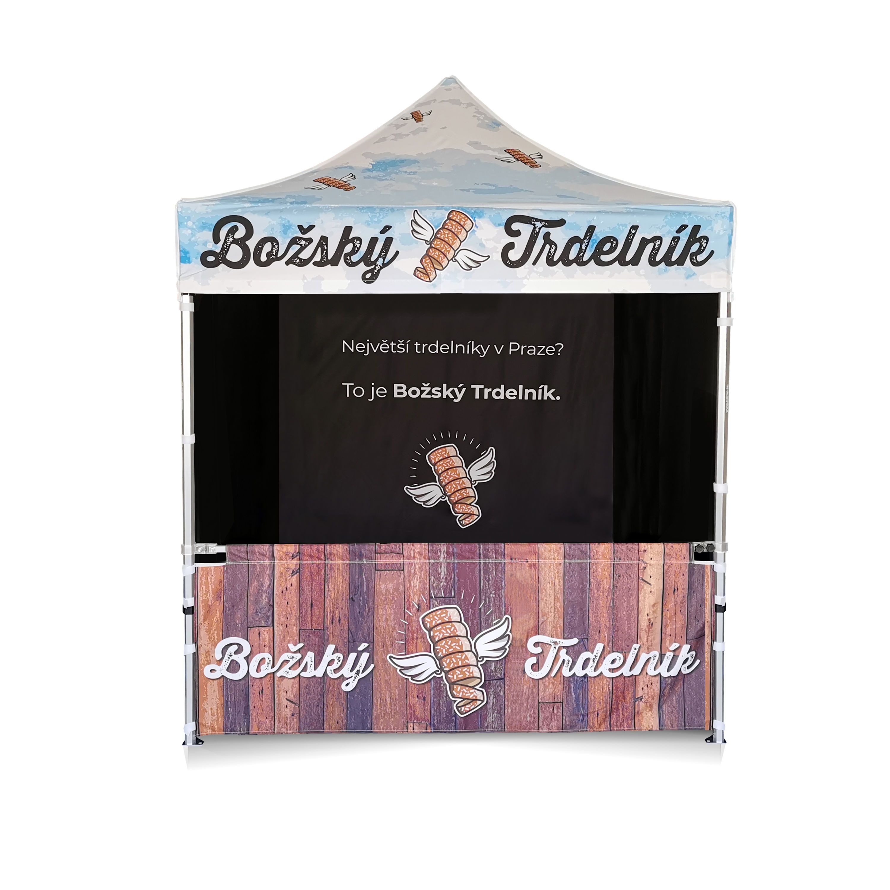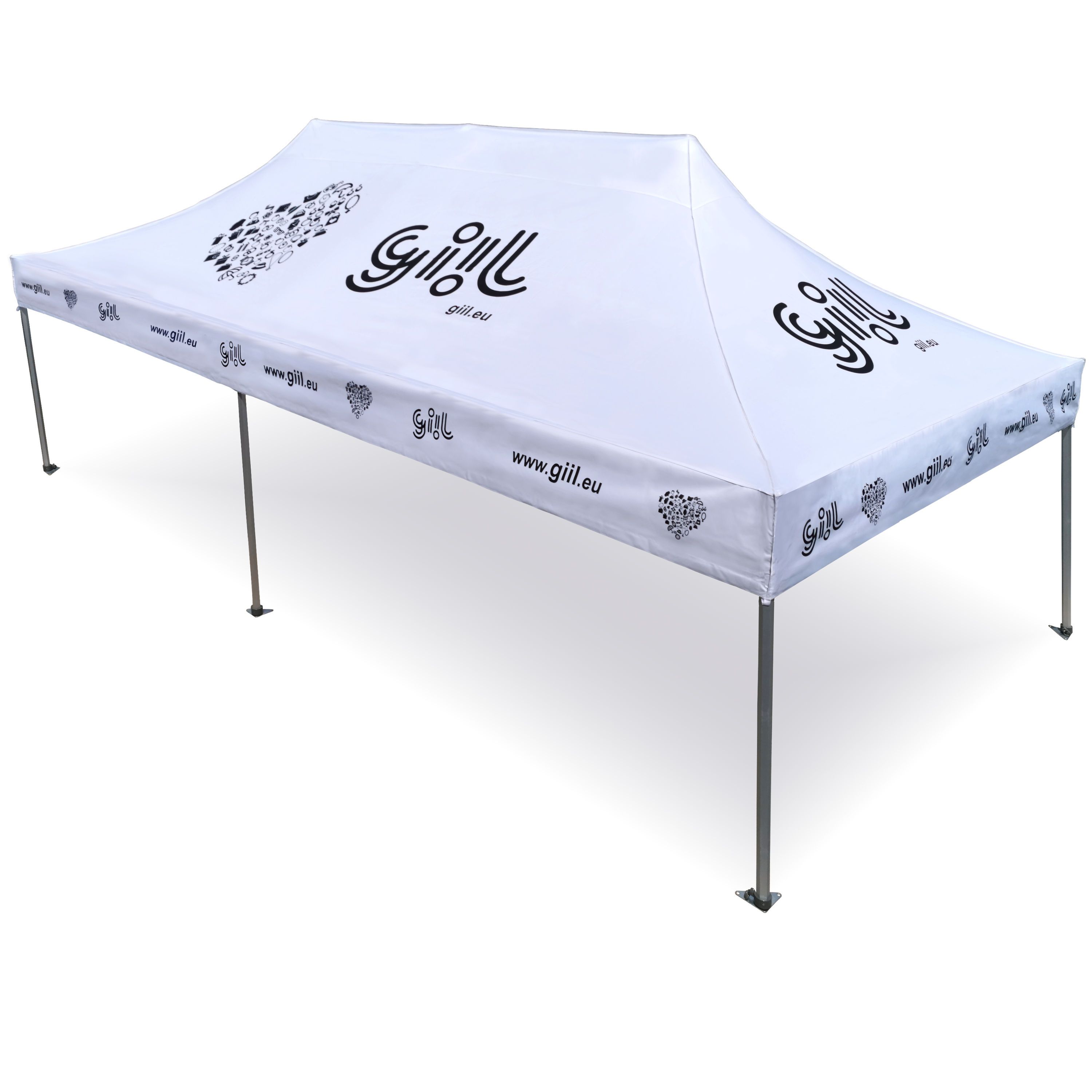 Os arquivos gráficos para impressão devem ser enviados na melhor qualidade possível para o e-mail de confirmação, que será enviado após o envio do pedido. Se o arquivo for superior a 25 MB, use um serviço de nuvem. Com base nos arquivos enviados, criaremos uma visualização em 2D, que será enviada para sua aprovação. Se você quiser criar sua própria visualização, encontrará o modelo no texto da quarta linha após a seleção do tamanho da tenda. Ao clicar no link, você será direcionado para o modelo. Isso permitirá aprimorar sua ideia e acelerar a visualização 2D, acelerando a entrega do pedido como um todo.