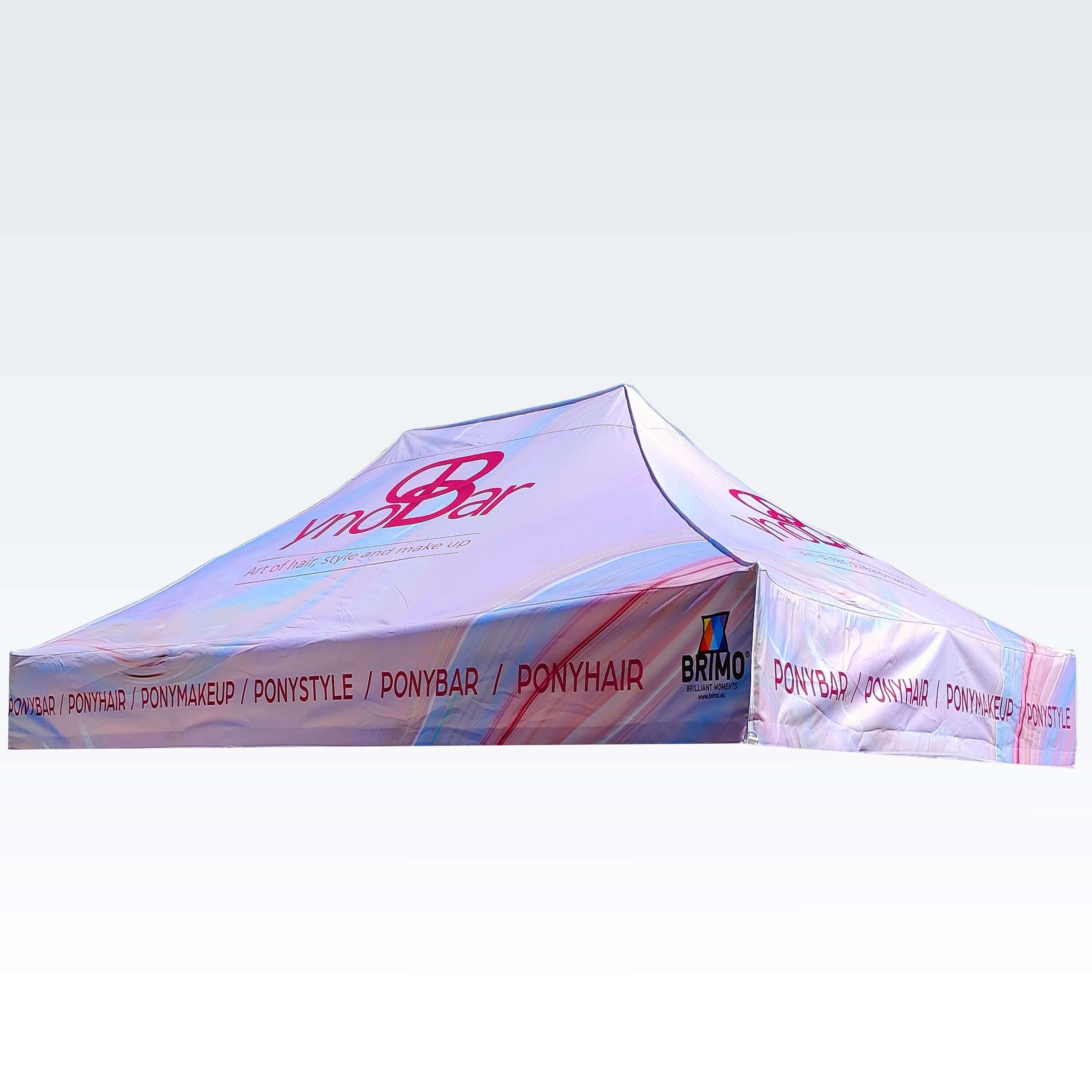 Não importa se é uma tenda pequena de 2x2 m ou uma grande tenda publicitária de 4x8 m, imprimimos imagens coloridas, elementos gráficos ou cobrimos toda a superfície da tenda publicitária com o design escolhido.