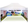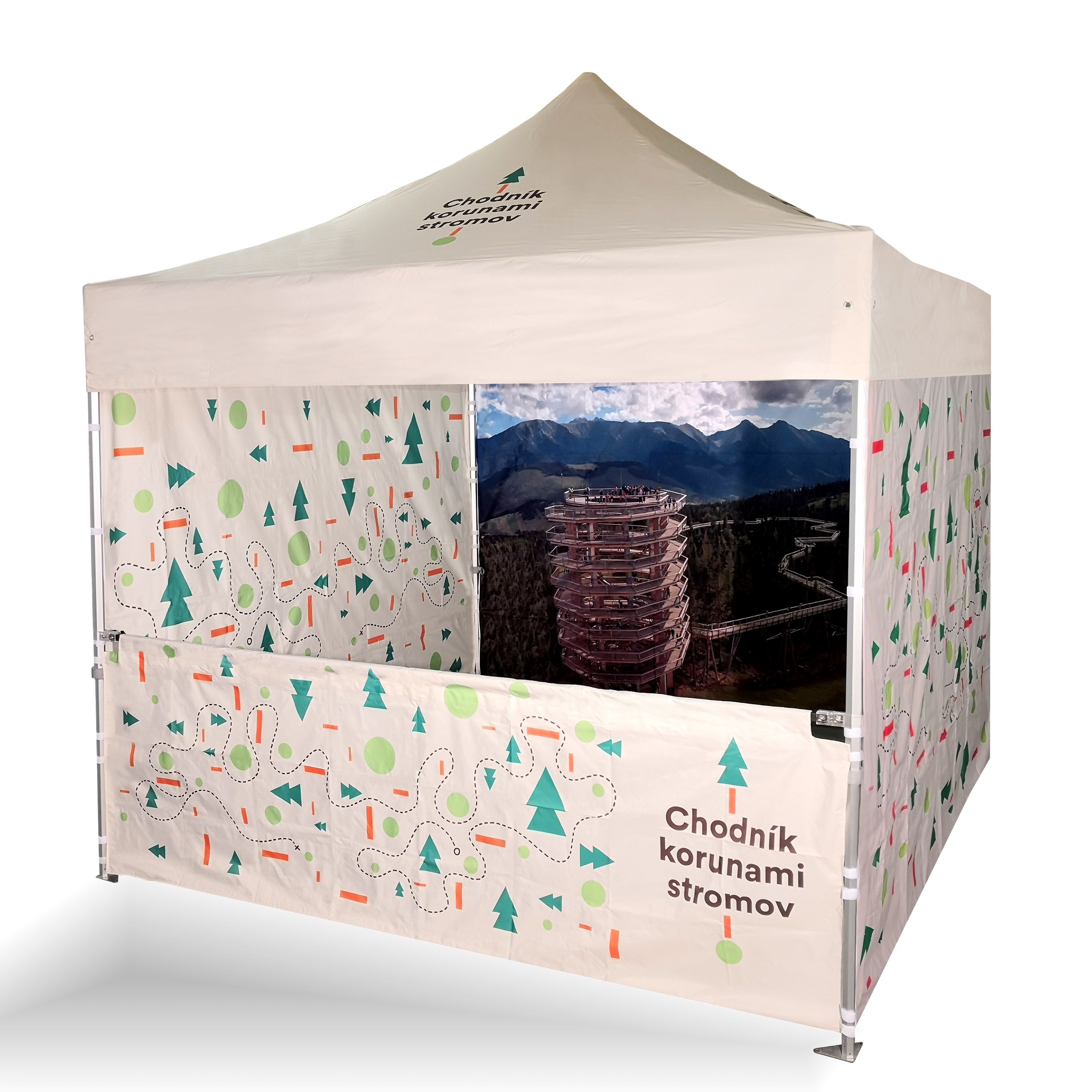 Não importa se é uma tenda pequena de 2x2 m ou uma grande tenda publicitária de 4x8 m, imprimimos imagens coloridas, elementos gráficos ou cobrimos toda a superfície da tenda publicitária com o design escolhido.