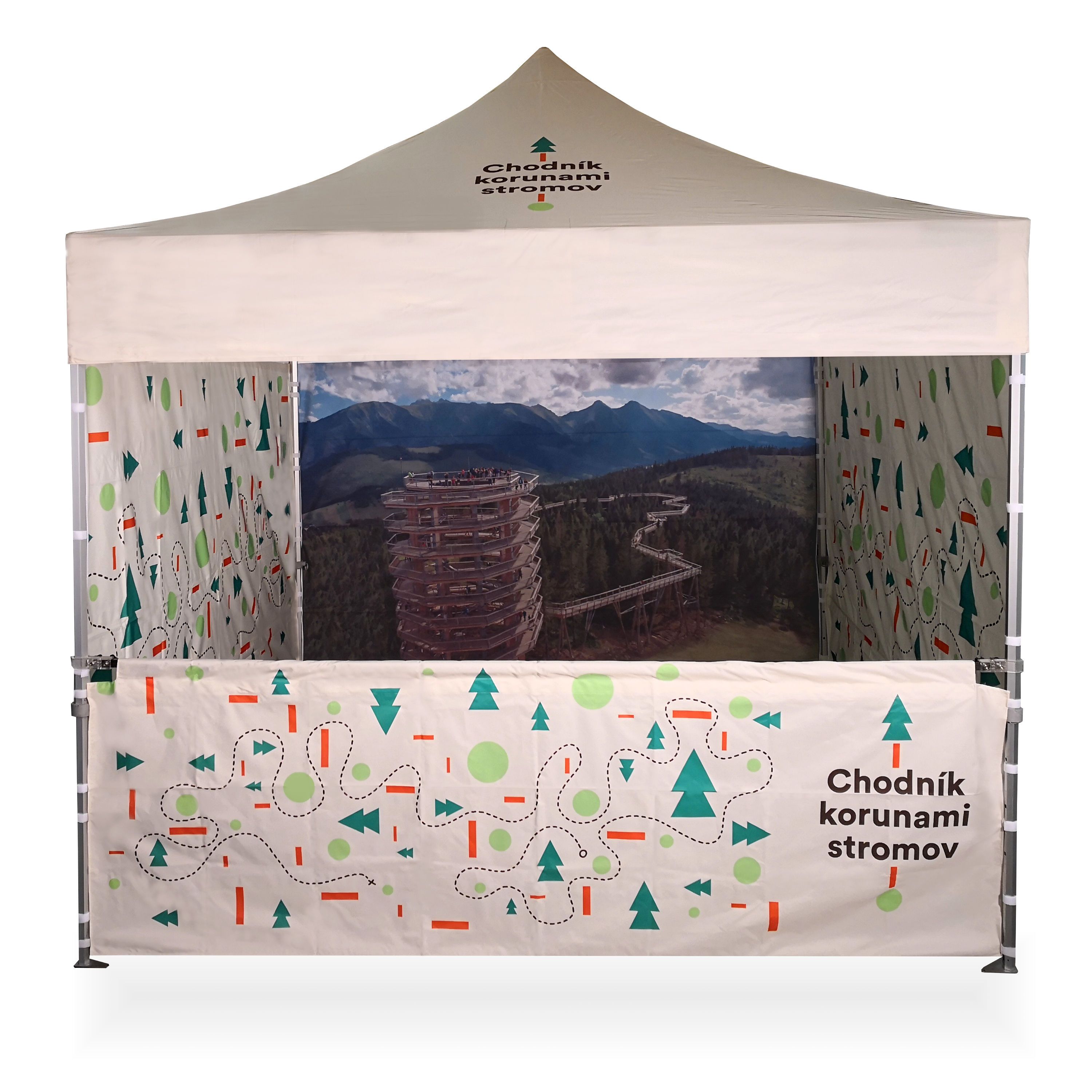 Os arquivos gráficos para impressão devem ser enviados na melhor qualidade possível para o e-mail de confirmação, que será enviado após o envio do pedido. Se o arquivo for superior a 25 MB, use um serviço de nuvem. Com base nos arquivos enviados, criaremos uma visualização em 2D, que será enviada para sua aprovação. Se você quiser criar sua própria visualização, encontrará o modelo no texto da quarta linha após a seleção do tamanho da tenda. Ao clicar no link, você será direcionado para o modelo. Isso permitirá aprimorar sua ideia e acelerar a visualização 2D, acelerando a entrega do pedido como um todo.