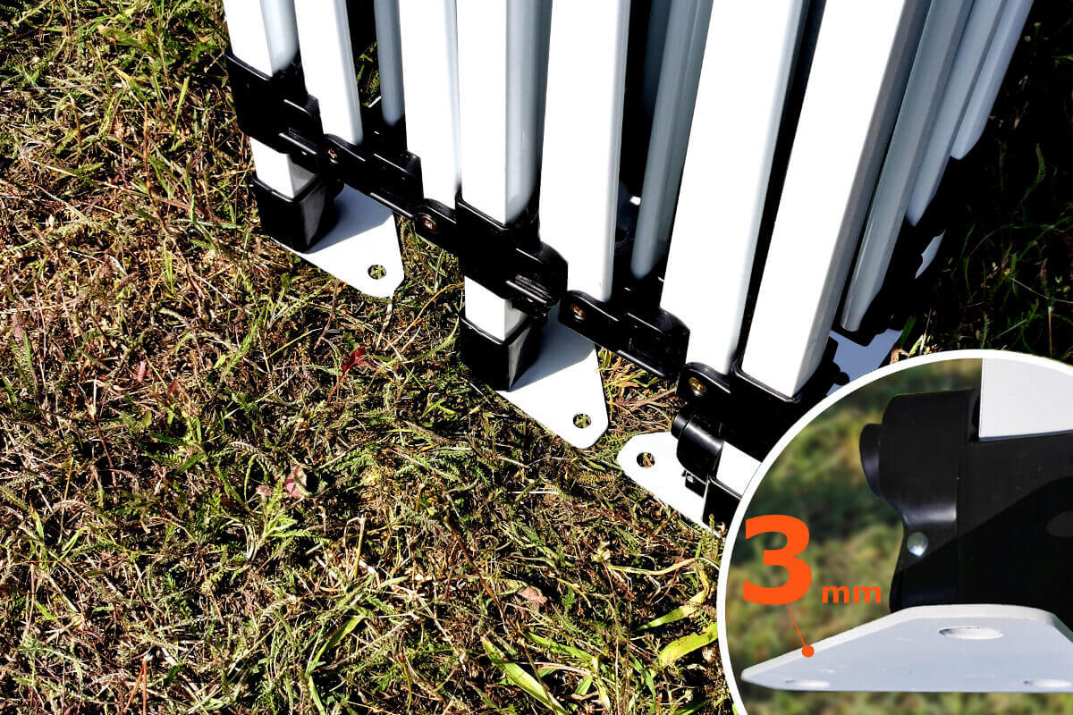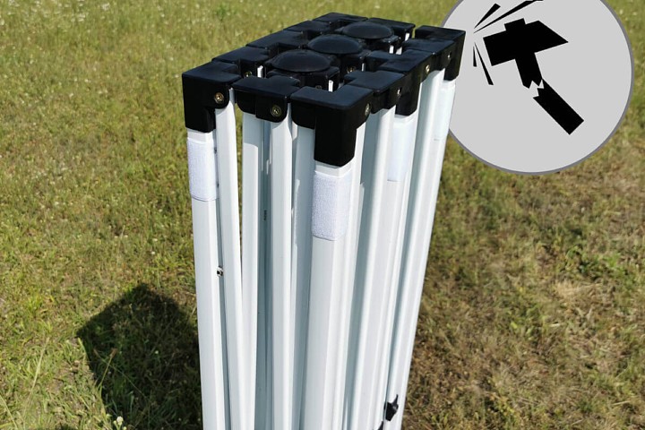 O design moderno irá satisfazê-lo. A estrutura de aço é leve, e a tenda é fácil de transportar. Graças ao sistema de montagem automática, a tenda 3x6m pode ser facilmente montada e desmontada em qualquer lugar. Nenhuma ferramenta adicional é necessária. As pernas têm perfil quadrado e cada peça pode ser facilmente substituída graças às conexões rosqueadas.