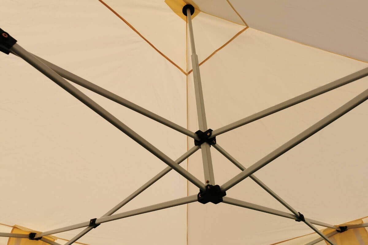 Uma das tendas mais robustas da nossa oferta resiste ao vento até 50 km/h. Não se esqueça de ancorar a tenda com estacas em superfícies macias ou pesos de aço ou sacos de areia. Esta é uma tenda realmente estável e um dos nossos modelos mais vendidos.