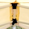 - Material do telhado: tecido 100% impermeável de poliéster, resistente a rasgos, revestido com camada de PVC, resistente à radiação UV (330 gr/m2)