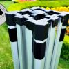 Esta tenda dobrável é fácil de montar, o que apreciará se tiver pouco tempo antes da abertura. Os componentes de alumínio são extremamente fortes, assim como as peças de ligação. Cada peça é aparafusada, o que é uma grande vantagem – em caso de danos, pode facilmente substituir a peça danificada.