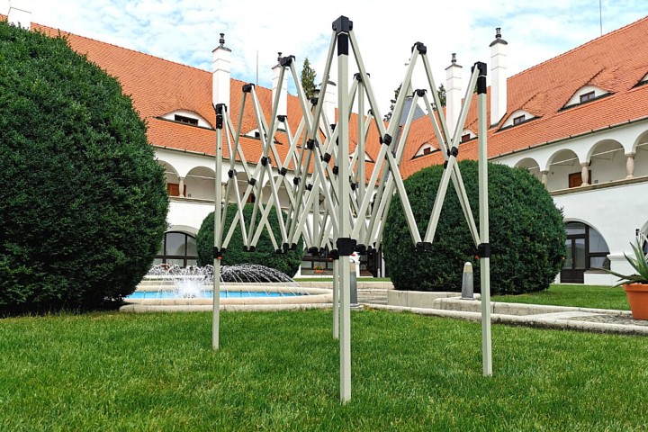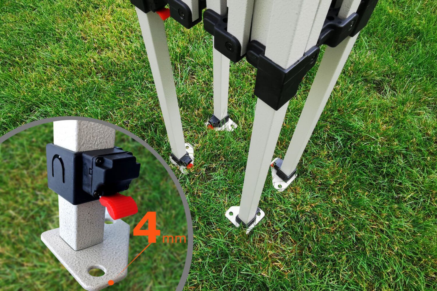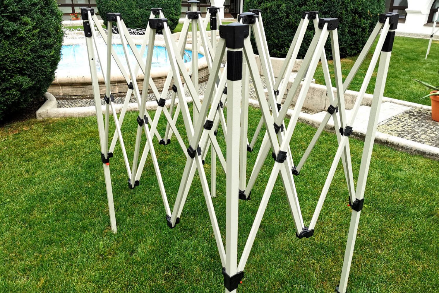 A nossa tenda de aço Super foi projetada com foco na segurança. Com a fixação correta e o uso de pesos, a estrutura pode resistir com segurança a ventos de até 40 km/h. Mas o melhor é o manuseamento – graças ao engenhoso mecanismo de tesoura, monta a tenda em apenas 40 segundos. O processo pode ser feito por uma única pessoa sem necessidade de ferramentas ou competências técnicas, poupando-lhe tempo para se dedicar aos seus clientes.