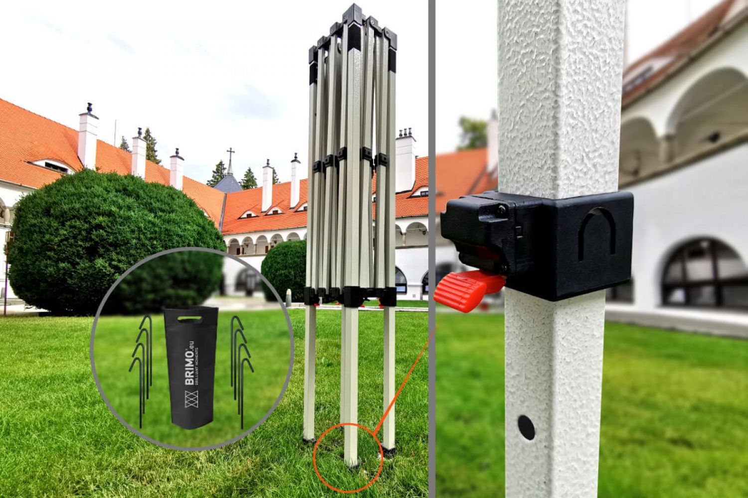 - Resistência ao vento: O modelo de super aço resiste a ventos de até 40 km/h. Os pés da estrutura estão equipados com orifícios para uma ancoragem firme. Receberá as estacas de ancoragem com a tenda de forma totalmente gratuita para a sua segurança máxima.