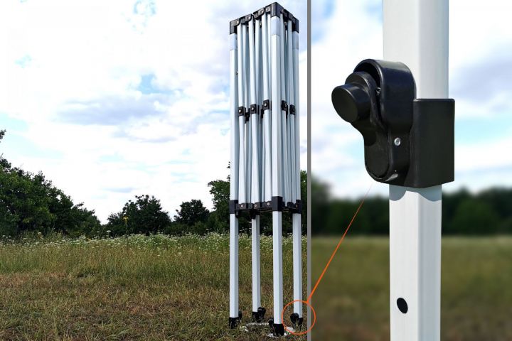 - Montagem relâmpago: Uma única pessoa pode montar e desmontar a tenda em apenas 40 segundos! Poupe tempo e energia preciosos em cada evento – o manuseamento é rápido e sem qualquer esforço.