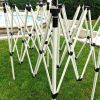 O coração da tenda é a robusta estrutura de tesoura totalmente em aço. Ao contrário das alternativas baratas, utilizamos tecnologia de lacagem termoplástica a pó, o que traz vantagens fundamentais para o uso profissional: