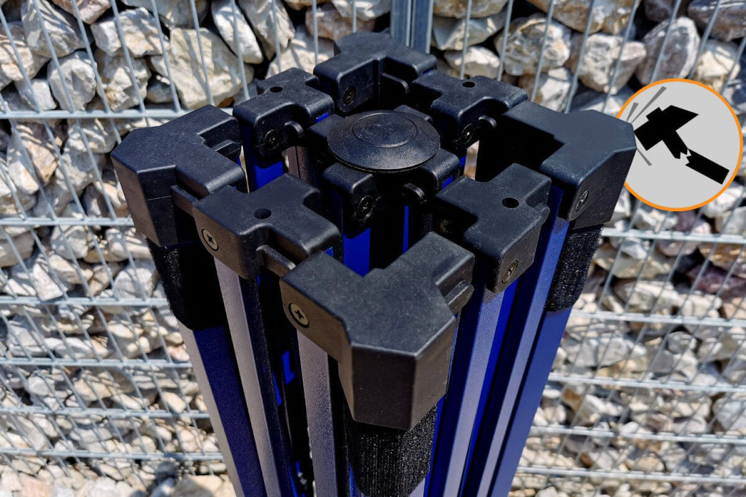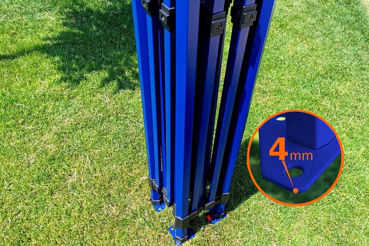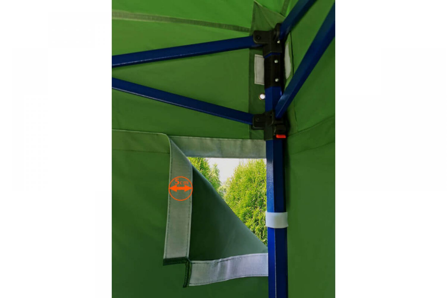 La couleur de la structure est bleu royal. Cette couleur donne à toute la tente un aspect exclusif. Elle se distingue de la concurrence et apporte quelque chose de nouveau sur le marché, que tout le monde souhaite avoir. Nous pensons que chaque entrepreneur veut se démarquer, c'est pourquoi nous proposons cette tente exclusive avec une couleur de structure non traditionnelle.