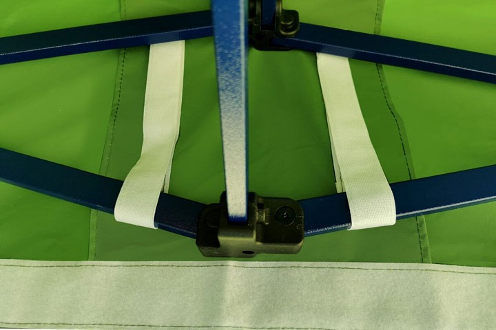 - Material do telhado: tecido 100% impermeável de poliéster, resistente a rasgos, revestido com camada de PVC, resistente à radiação UV (330 gr/m2)
