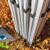 - Material do telhado: tecido 100% impermeável de poliéster, resistente a rasgos, revestido com camada de PVC, resistente à radiação UV (330 gr/m2)