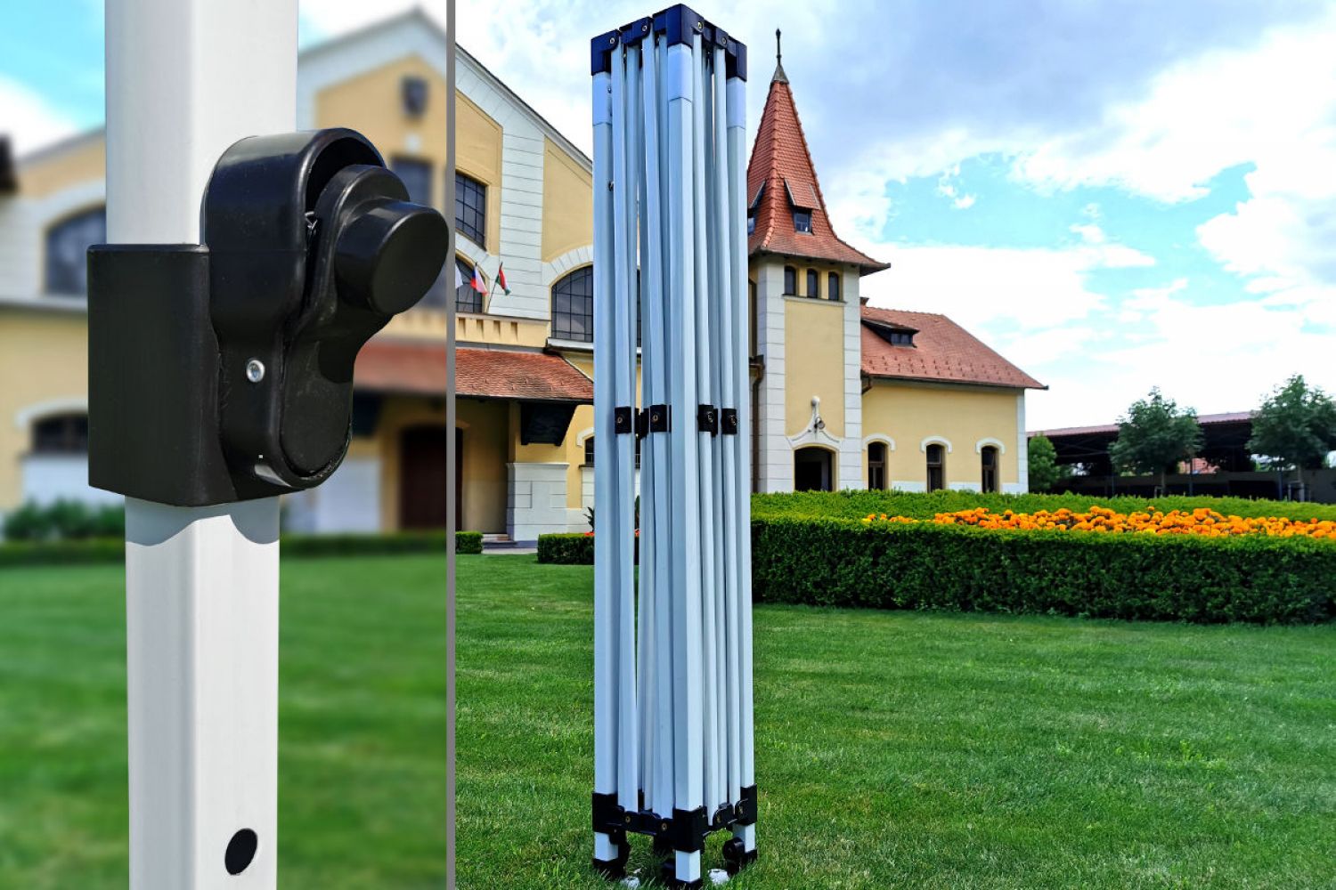 Montar e desmontar a tenda é rápido. Sem ferramentas ou instruções complicadas, você pode montar a tenda em segundos. Graças à prática estrutura metálica automática, uma pessoa pode facilmente montá-la onde for necessário em poucos segundos. Você não precisa se preocupar com nada. Tendas publicitárias com impressão apoiarão seu negócio e ajudarão na apresentação dos produtos.