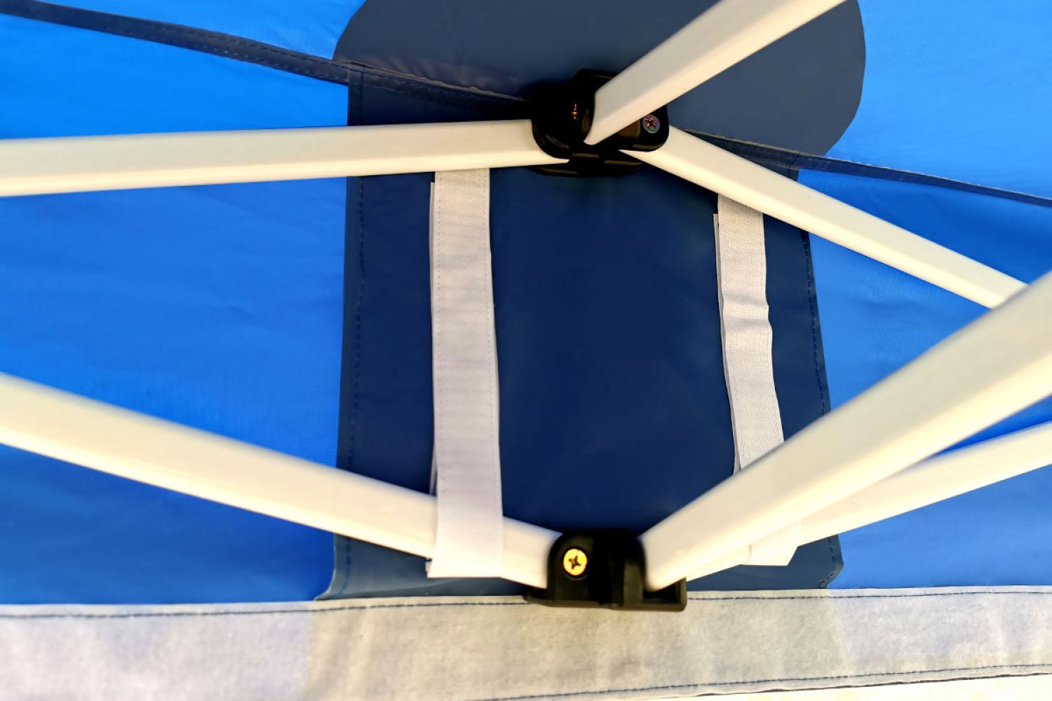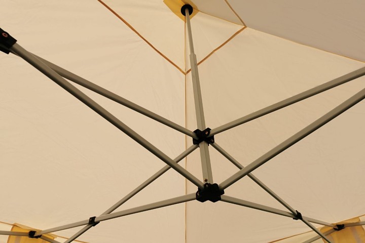 O tecido de poliéster denso é o coração da lona. A camada interna de PVC cria sombra perfeita. Cada junção é reforçada e a tenda é 100% à prova d’água. A tenda publicitária com impressão também é ideal para armazenar produtos em feiras; se todos os seus produtos não cabem no espaço de exposição, você pode guardá-los com segurança numa tenda vizinha.